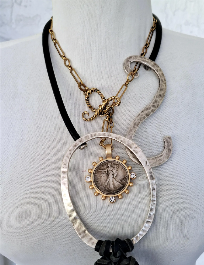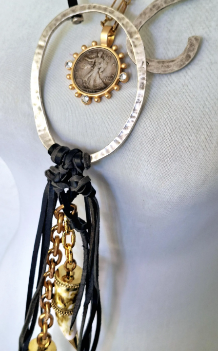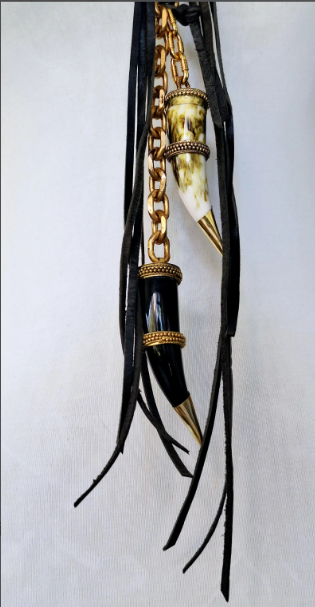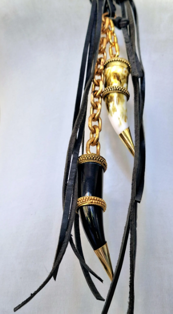 Bone & horn, Brass, Leather, Stone