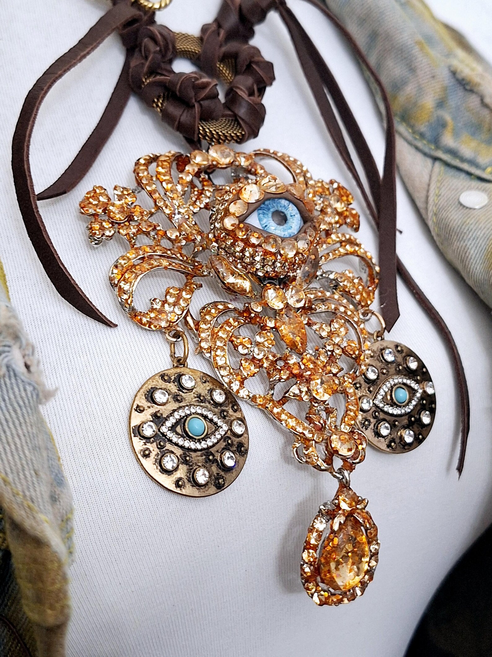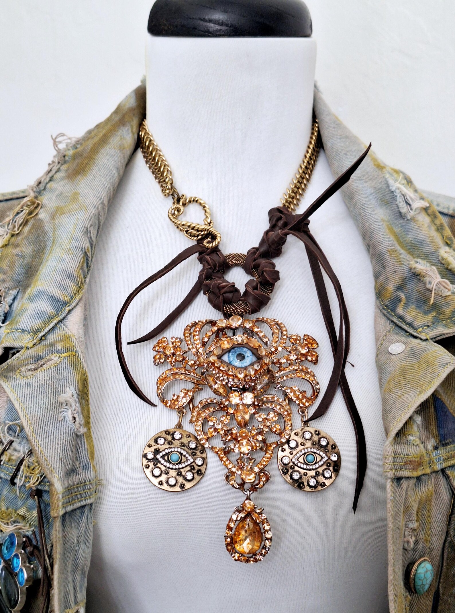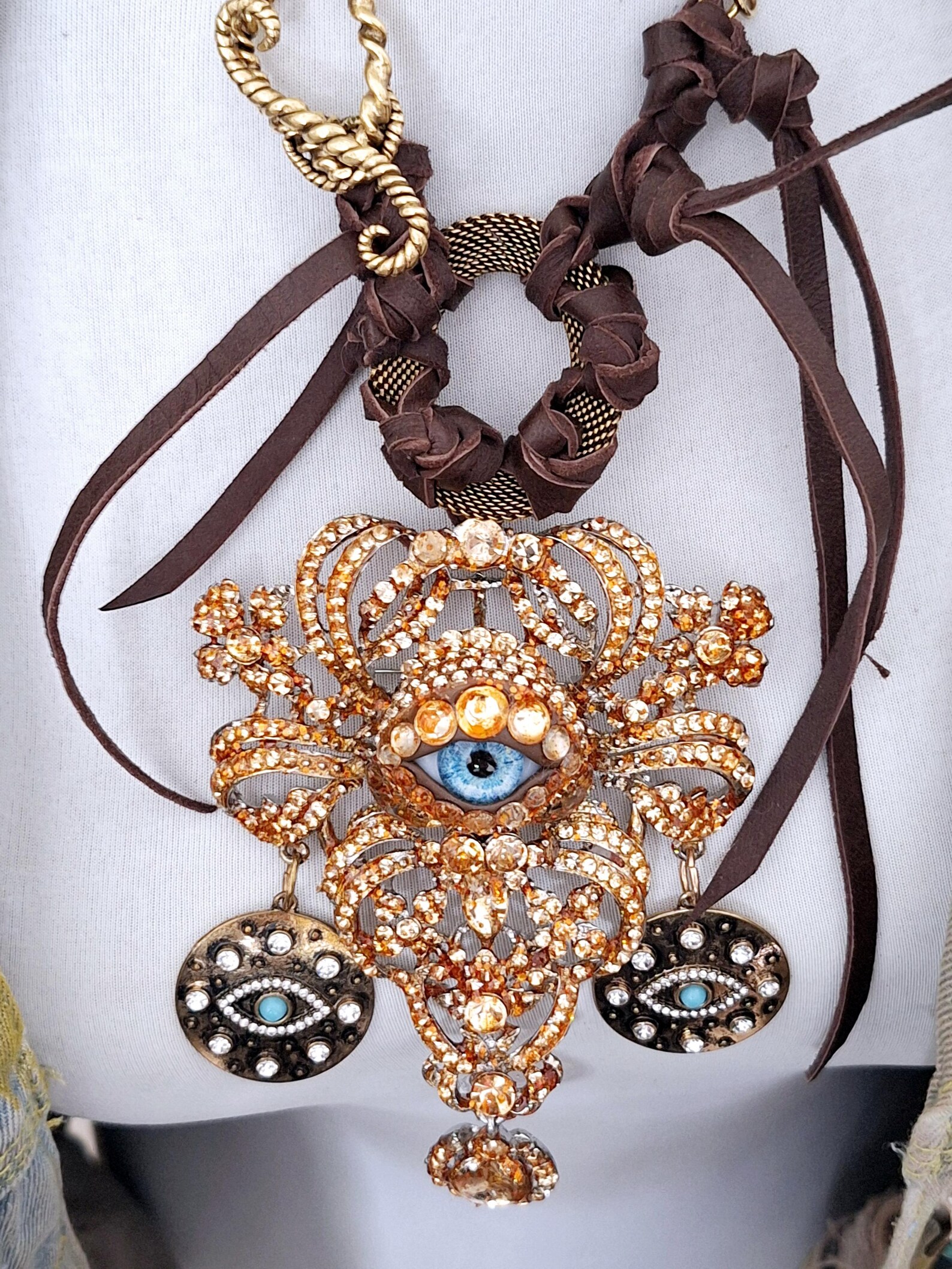 MARZIA G. NKS-105 sm – affordable Statement Necklace -Leather Handcraft with relevant Centerpiece